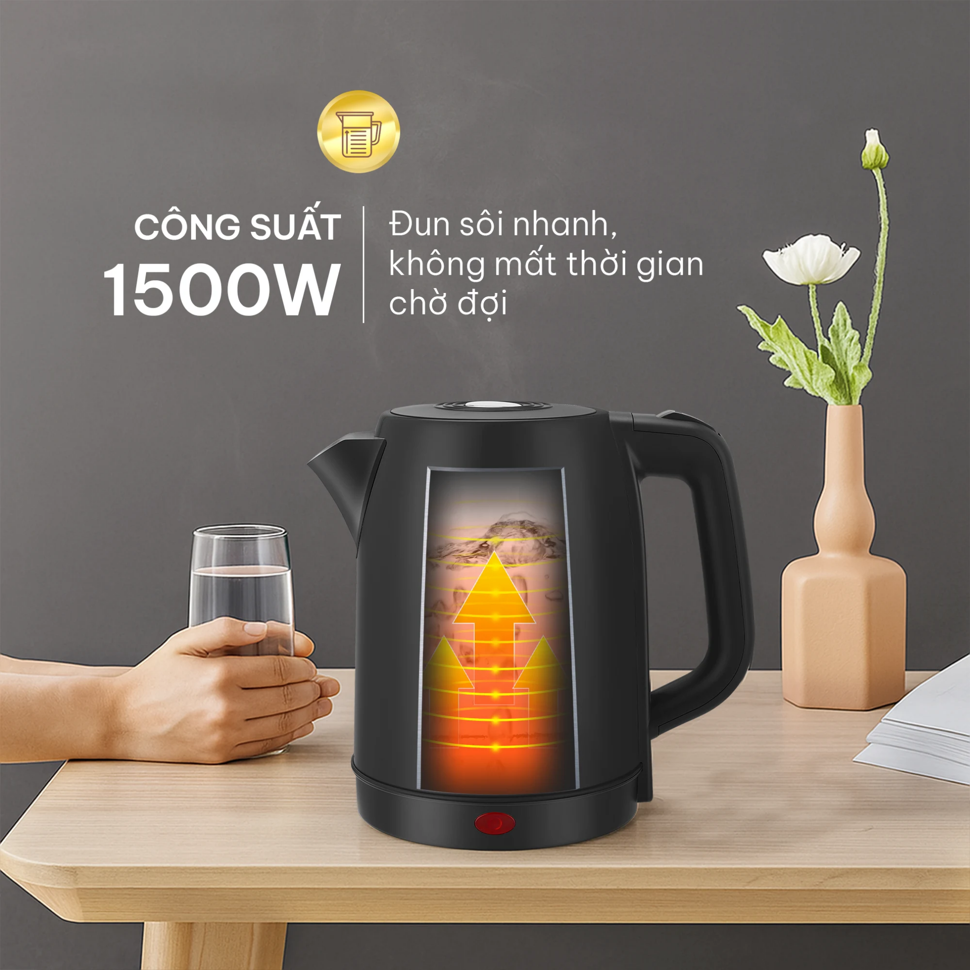 Công suất 1500W – Đun sôi nhanh chóng