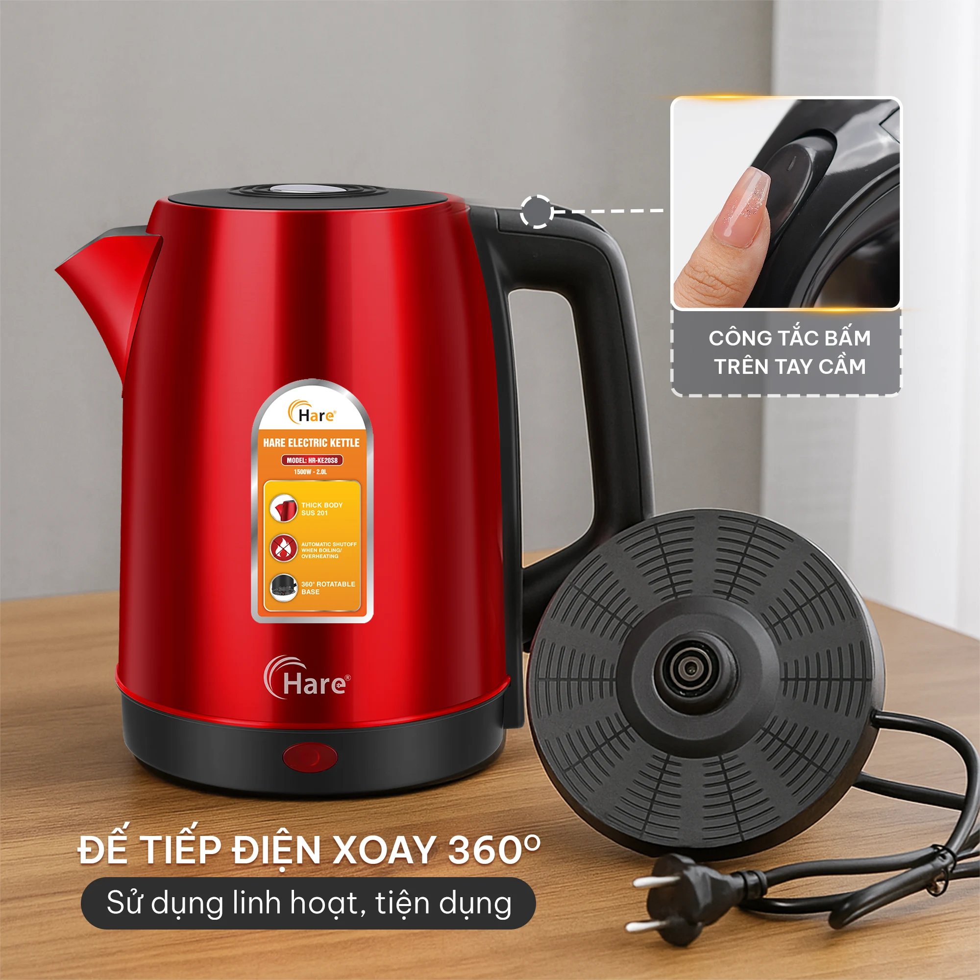 - Tên sản phẩm: ẤM SIÊU TỐC HARE HR-KE20S8