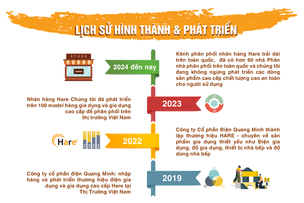 Công ty cổ phần điện Quang Minh đã và đang phát triển kênh phân phối chính hãng thương hiệu điện gia dụng Hare tại thị trường Việt Nam từ năm 2019. Hare là thương hiệu gia dụng, điện gia dụng chất lượng cao, áp dụng công nghệ ở các nước tiên tiến. Với mục tiêu trở thành thương hiệu gia dụng cao cấp được nhiều người tiêu dùng tại Việt Nam lựa chọn với khẩu hiệu “Gia dụng cho mọi nhà”.