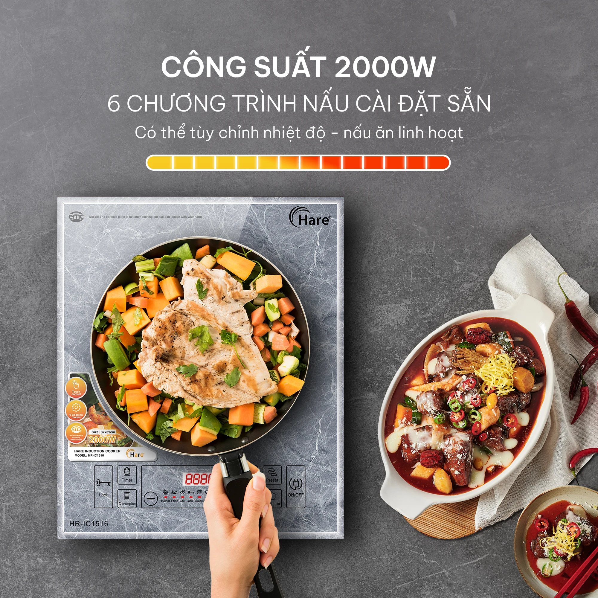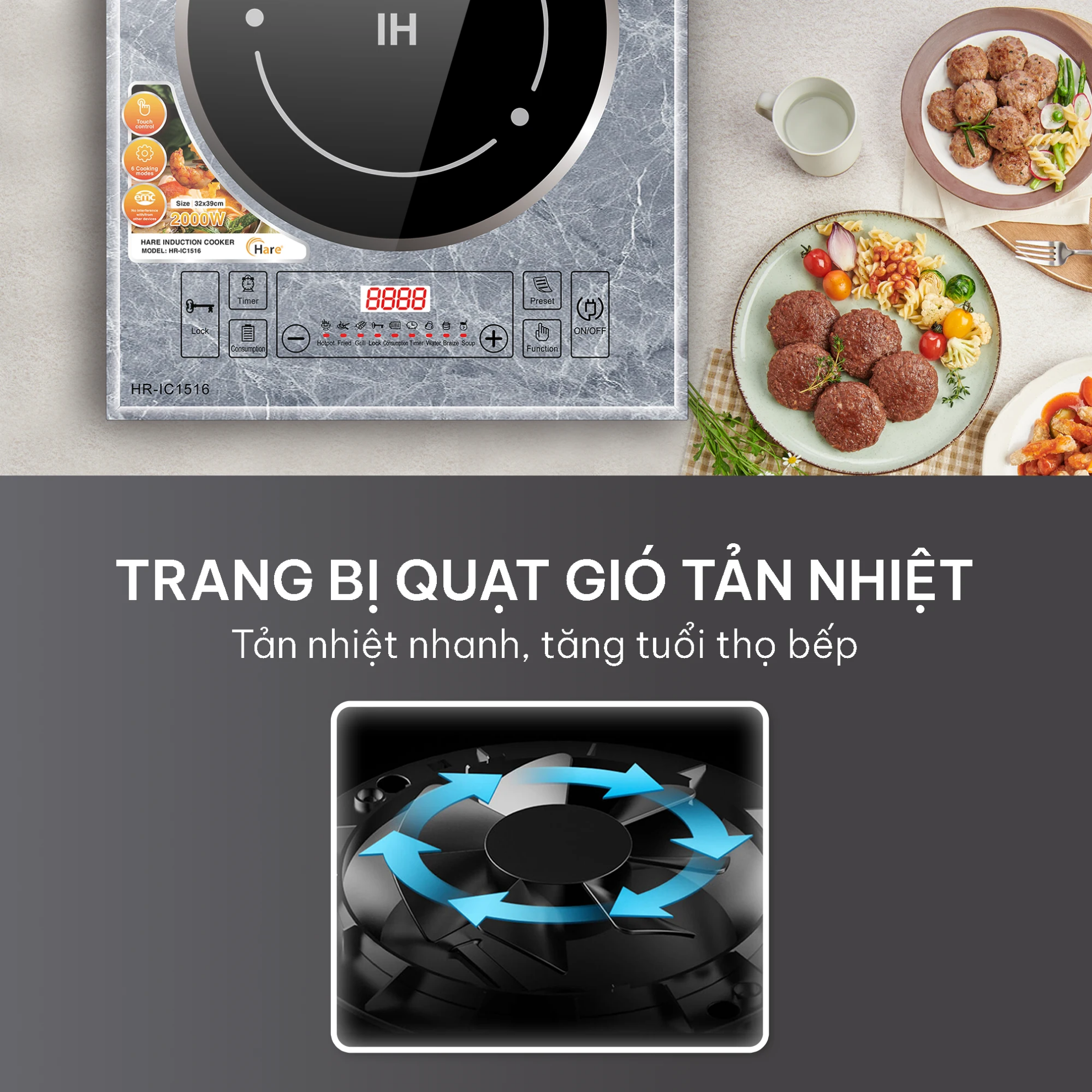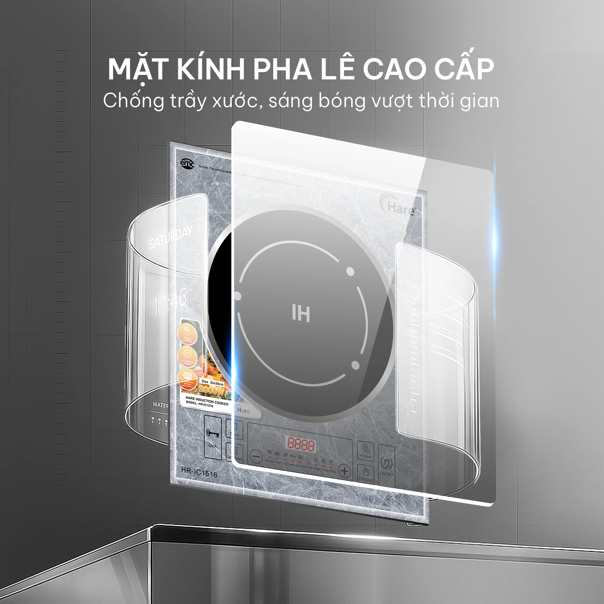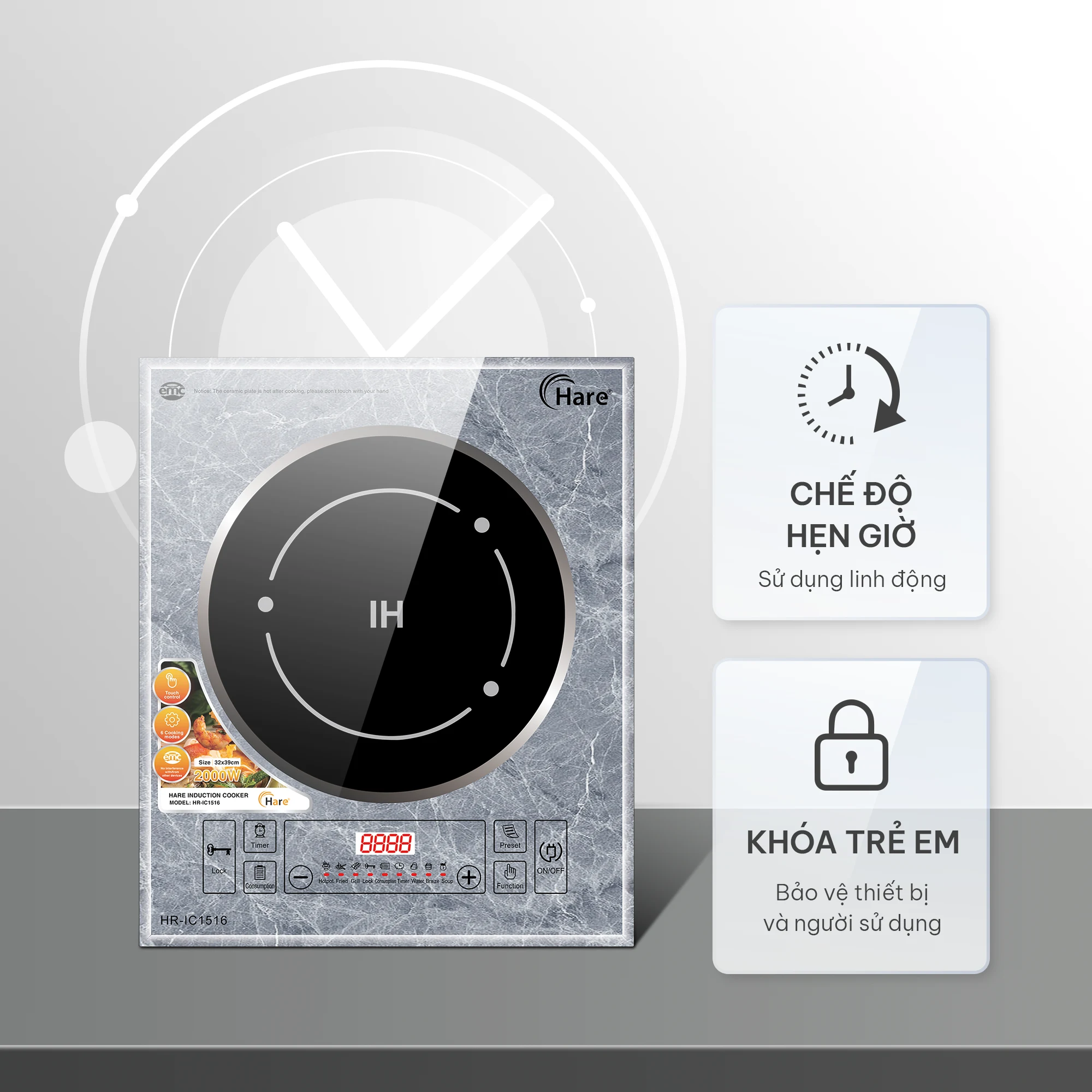 Bếp điện từ Hare HR-IC1516 – Hiện đại, sang trọng, tiện lợi cho mọi gian bếp