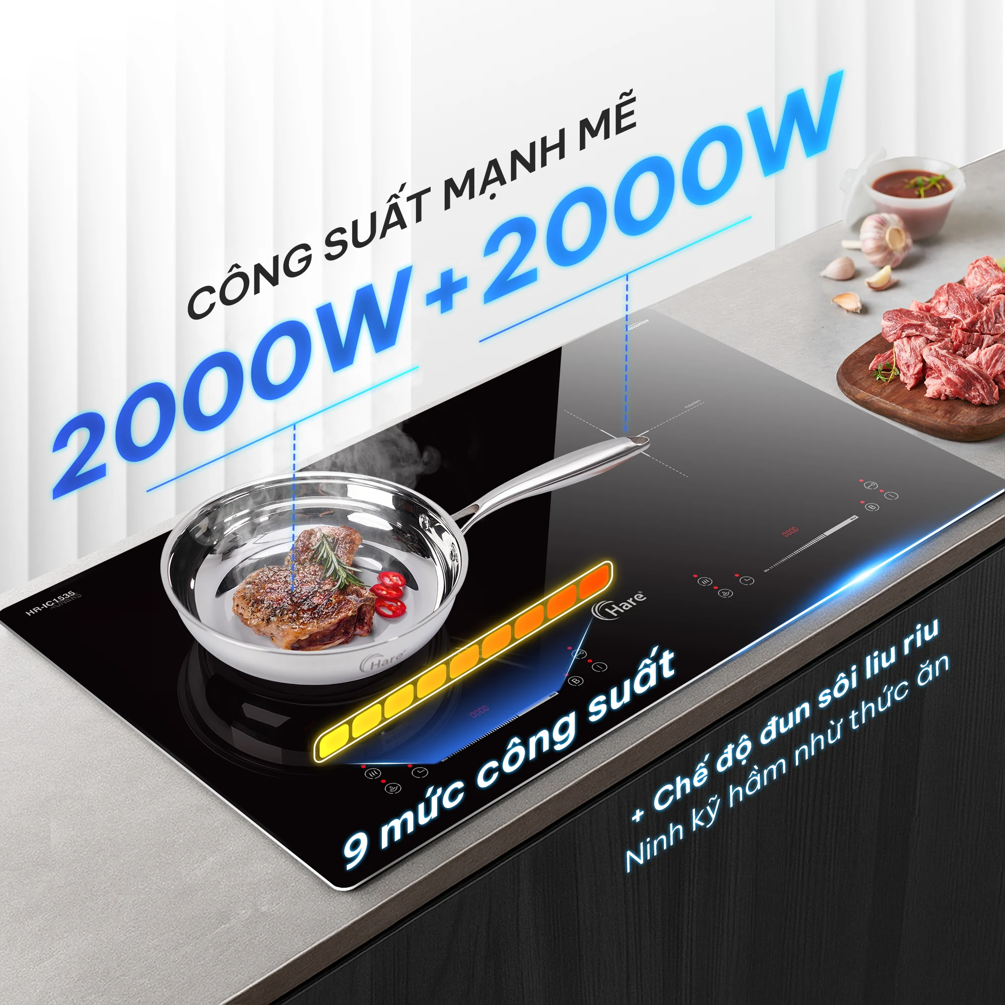 Bếp được trang bị 2 vùng nấu độc lập, mỗi vùng có công suất 2000W, cho phép bạn nấu nhiều món cùng lúc.