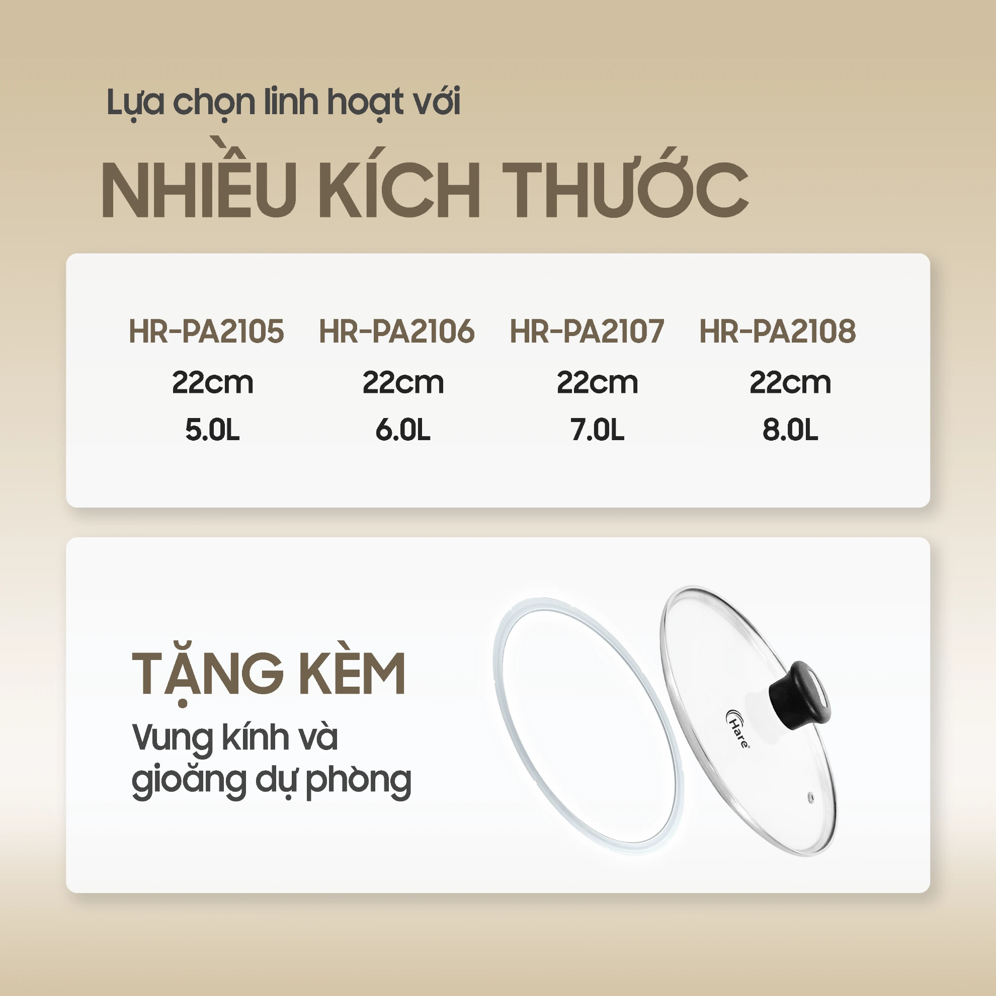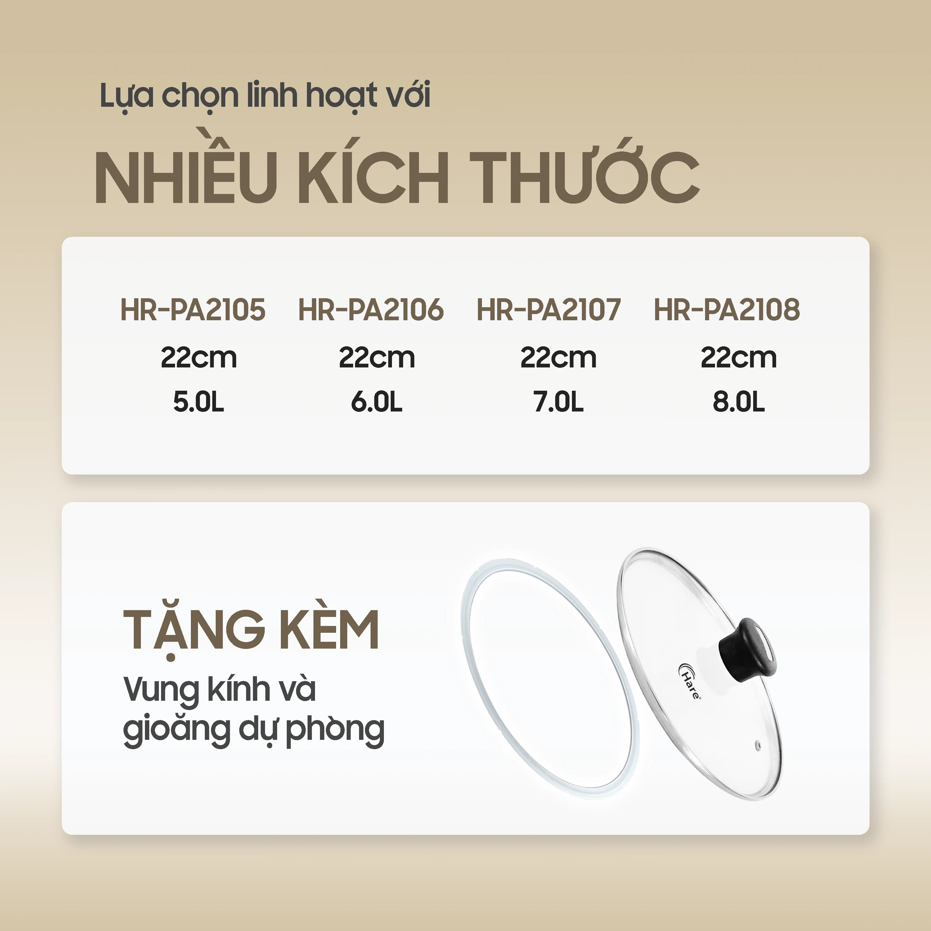 - HR-PA2107 (7 Lít): Tiện lợi cho các bữa tiệc nhỏ hoặc hầm nguyên con gà/vịt.