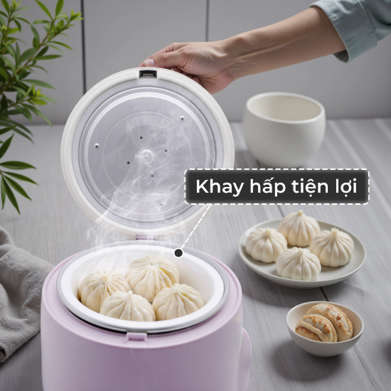 Xửng hấp đi kèm: Hấp bánh, rau củ, hâm nóng thức ăn một cách nhanh chóng.