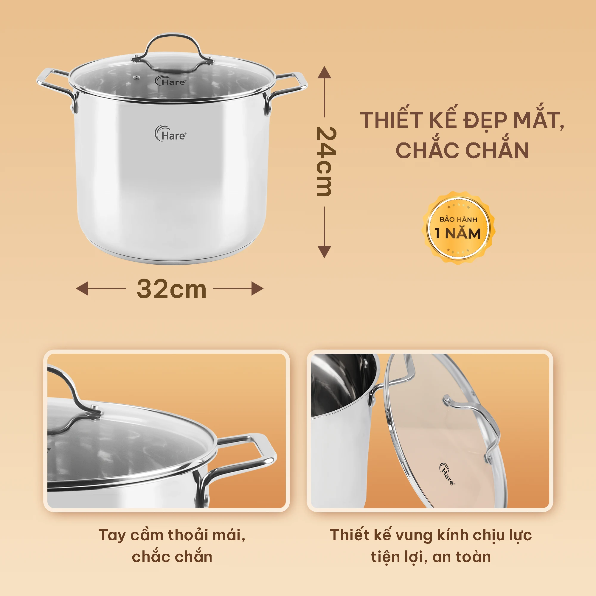 Với sự kết hợp giữa dung tích lớn – chất liệu cao cấp – thiết kế tiện dụng, nồi inox luộc gà Hare HR-P3038 không chỉ phù hợp cho gia đình đông người mà còn là lựa chọn lý tưởng cho quán ăn, bếp tập thể hay những ai thường xuyên nấu nướng số lượng lớn.