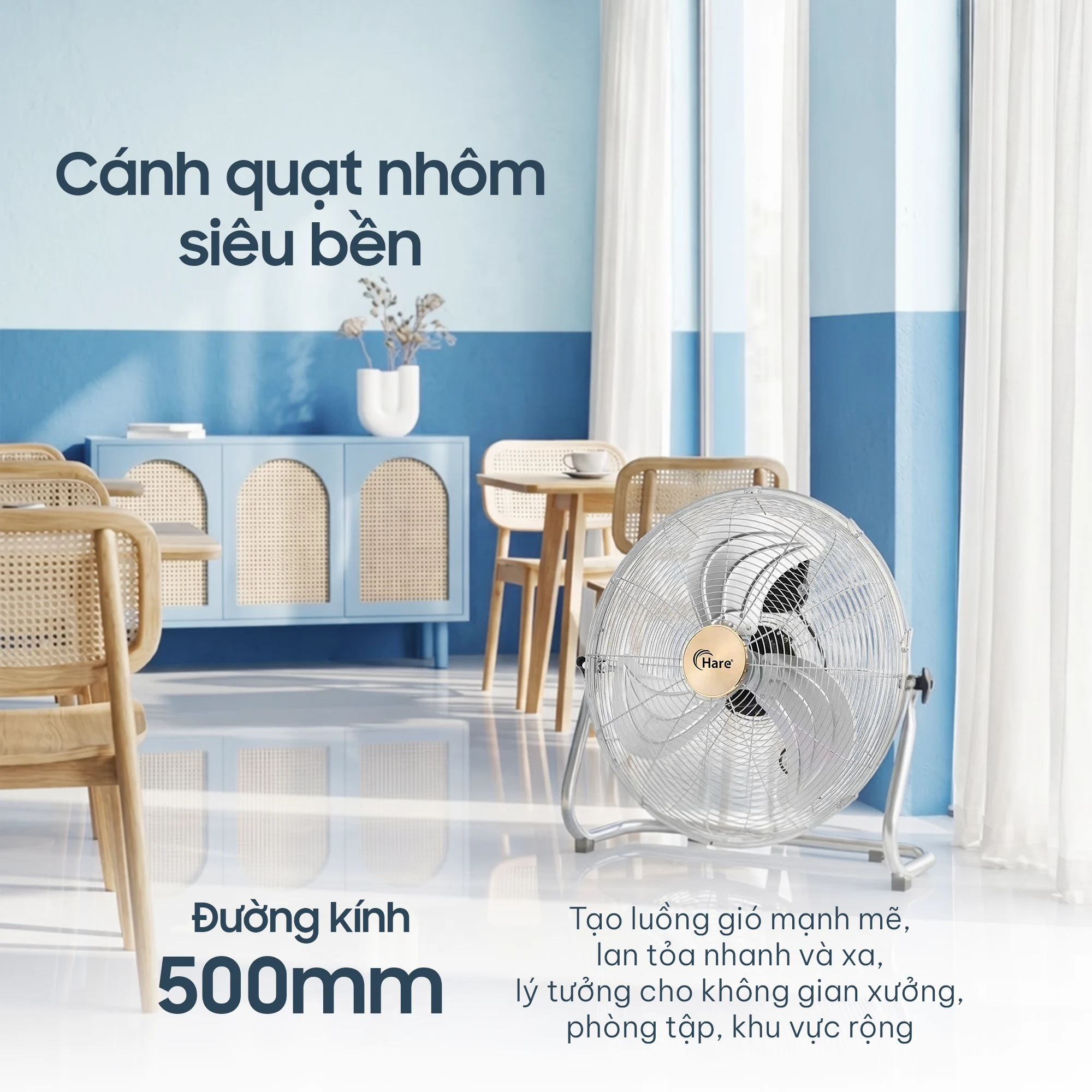 - Sải cánh rộng: Với đường kính lên tới 500mm, cấu tạo cánh được tính toán khí động học để "chém" gió hiệu quả hơn, tạo ra luồng gió ổn định, không bị ngắt quãng, mang lại cảm giác dễ chịu như gió tự nhiên.