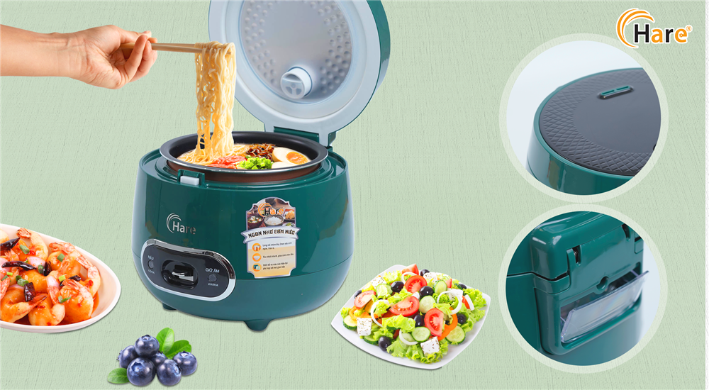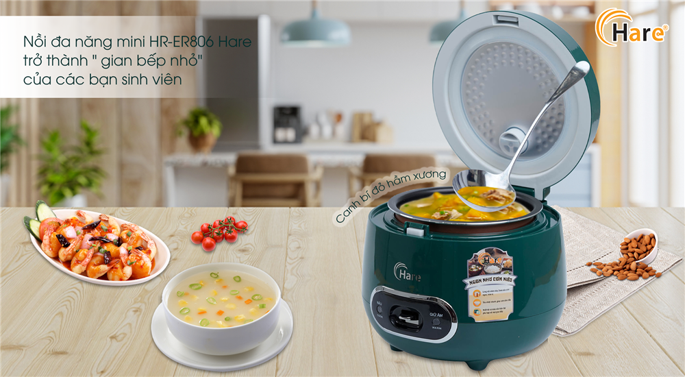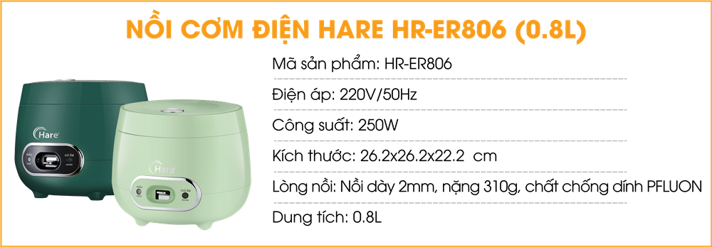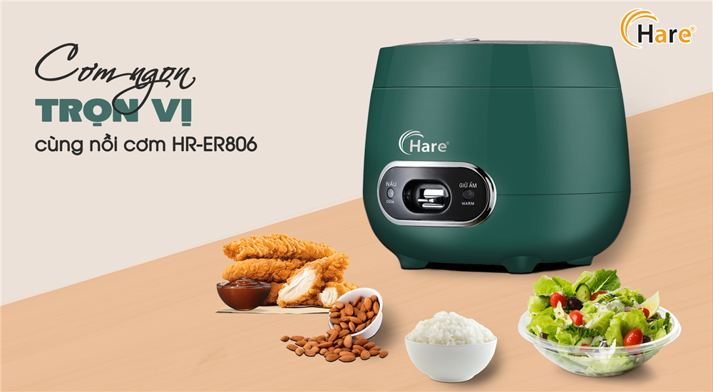 Nồi cơm điện Hare HR-ER806 với thiết kế nhỏ, xinh xắn là sự lựa chọn phù hợp dành cho nhiều đối tượng khác nhau cũng như nấu được nhiều món khác nhau.